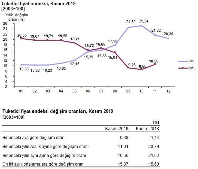 Enflasyon kasımda yüzde 0,38 artarken, yıllık bazda yüzde 10,56 oldu. Kasım ayı enflasyon oranları tüi̇k tarafından açıklandı. Kasım 2018 enflasyon rakamları hem vatandaşlar hemde ekonomi çevreleri tarafından bekleniyordu. Tüi̇k, kasım ayı enflasyon rakamlarını açıkladı. Tüi̇k'in açıkladığı enflasyon rakamları, sonrası ana harcama grupları itibarıyla 2019 yılı kasım ayında endekste yer alan gruplardan, ev.